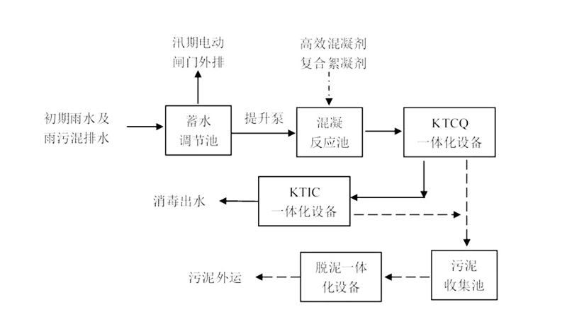 本項目為云岫路建昌橋南側雨水排放口截污治理工程,收集并處理該項目區域內的初期雨水及雨污混排污水。污水表觀水質情況較差,污水顏色顯黑發臭且管網內沉砂較多。 針對于該項目實際情況,我公司采用就地分散式處理設備,選用工藝KtCQ+KtIC快速處理一體化設備針對該雨污混排水進行處理,處理水量1000t/d,處理后主要出水水質指標達到《地表水環境質量標準》(GB 3838-2002)Ⅴ類水以上。