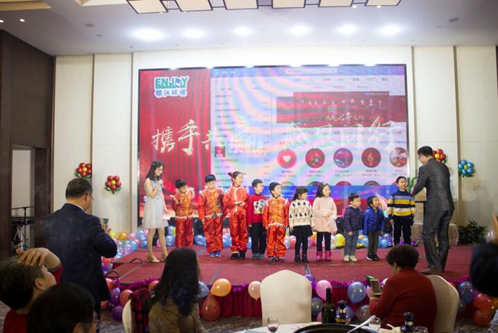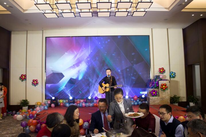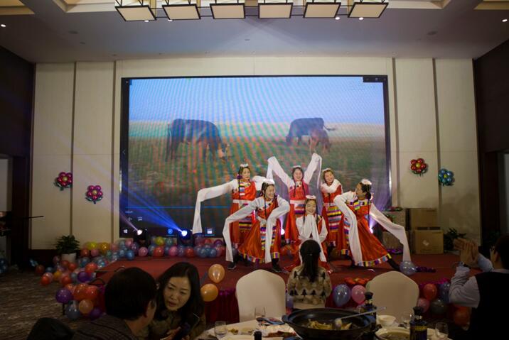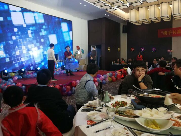 晚餐和文藝節目同時進行,舞蹈《C哩C哩》拉開晚會序幕,銀江吉祥寶寶如意也閃亮登場。隨后,歌曲、彈唱、藏舞、合唱、三句半、魔術、游戲、抽獎、優秀員工頒獎等穿插進行。