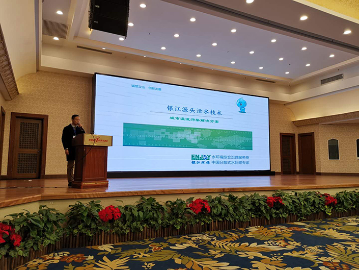 銀江環保技術總監王敏先生代表公司做了精彩發言,現場交流銀江源頭活水技術。