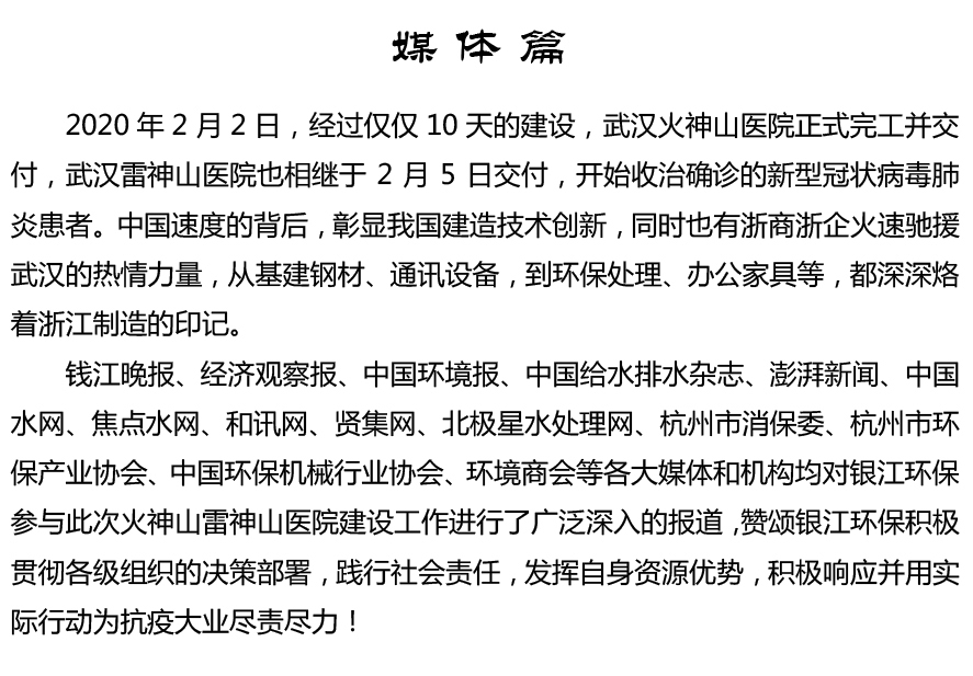 銀江環(huán)保?火神山與雷神山抗疫之戰(zhàn)發(fā)布日期:2020-03-16