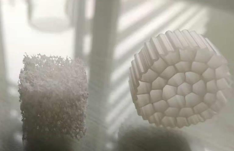 微生物賴以棲息的新型載體研制開發是移動生物膜法處理廢水的關鍵技術之一,其性能直接影響著污水的處理效果和投資費用。科研工作者以改進填料為突破口,不斷推動移動生物膜法的發展。目前的懸浮填料大多是由聚乙烯、聚丙烯及其改性材料、聚氨酯泡沫體等制成的,比重接近于水,長了生物膜以后,在正常的曝氣強度下極易達到全池流化翻動。懸浮填料的形狀通常為球狀、立方體、圓筒狀或粒狀,一般認為球狀有良好的水力學特性,是最理想的形狀。但受到生產技術的限制,材料作成球狀很困難;而圓筒狀填料當其長徑比為1時接近于球狀,因此PE懸浮填料一般選擇圓筒狀。聚氨酯懸浮填料依靠切割工藝,因此聚氨酯海綿填料選擇正方體。一般來說,國內使用的載體外形尺寸比國外的要大,這主要是受整個工藝和出水格柵的限制,特別是國內進水復雜,預處理不到位,水質水量波動大等因素影響。(下圖左邊為親水性聚氨酯懸浮填料,右邊為HDPE懸浮填料)