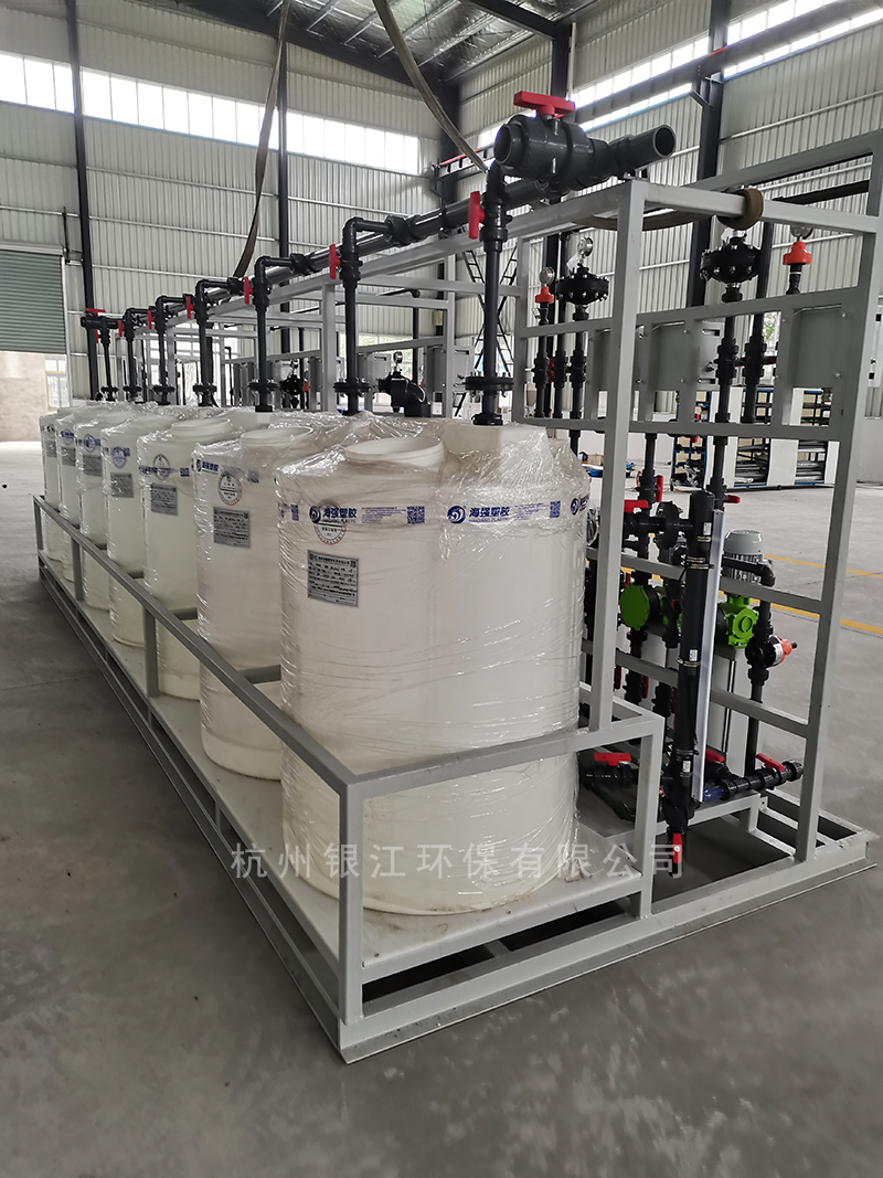 桶體、加藥泵、電控箱和管件集成安裝在架體上,結構緊湊,安裝運輸方便;